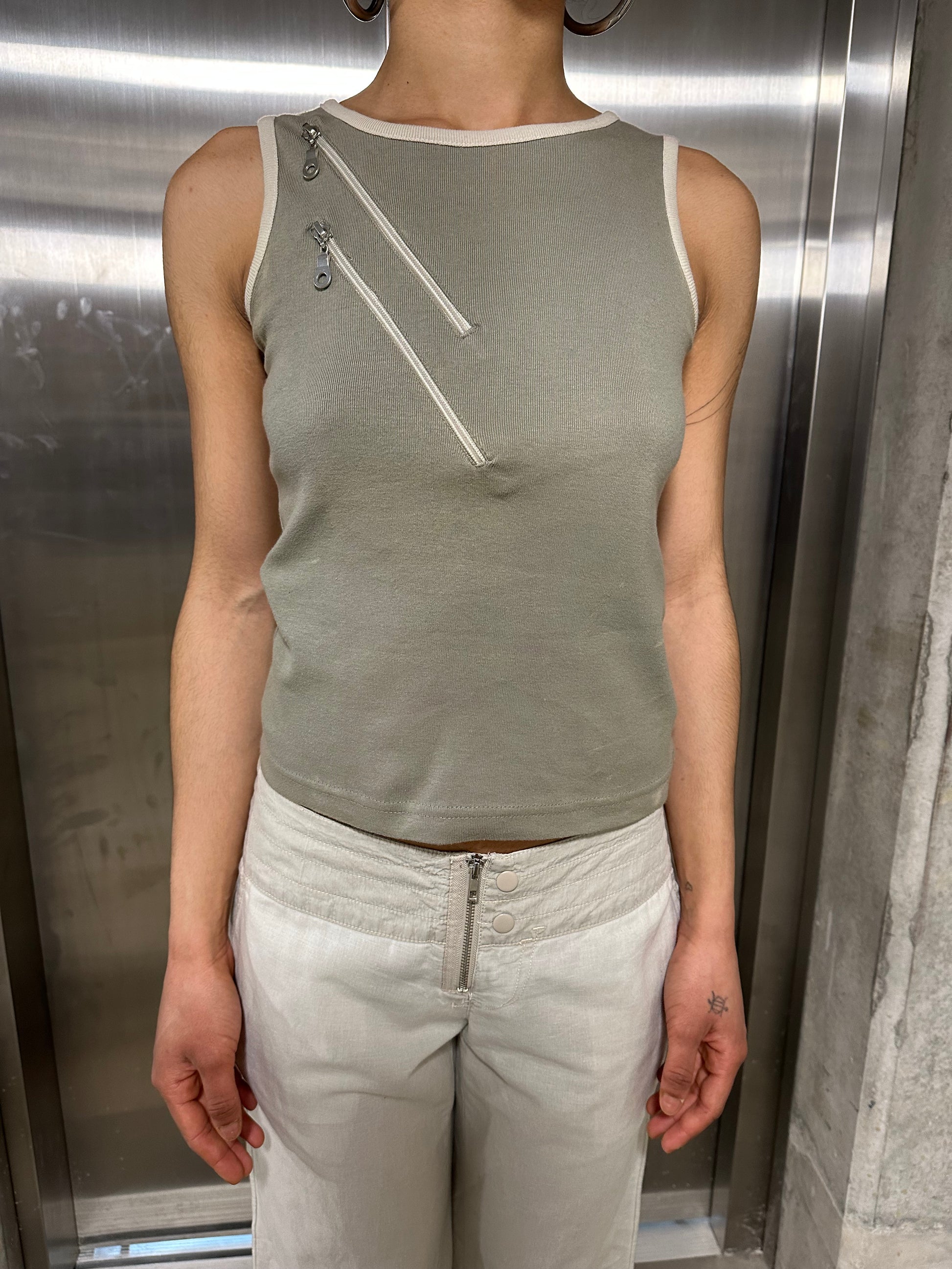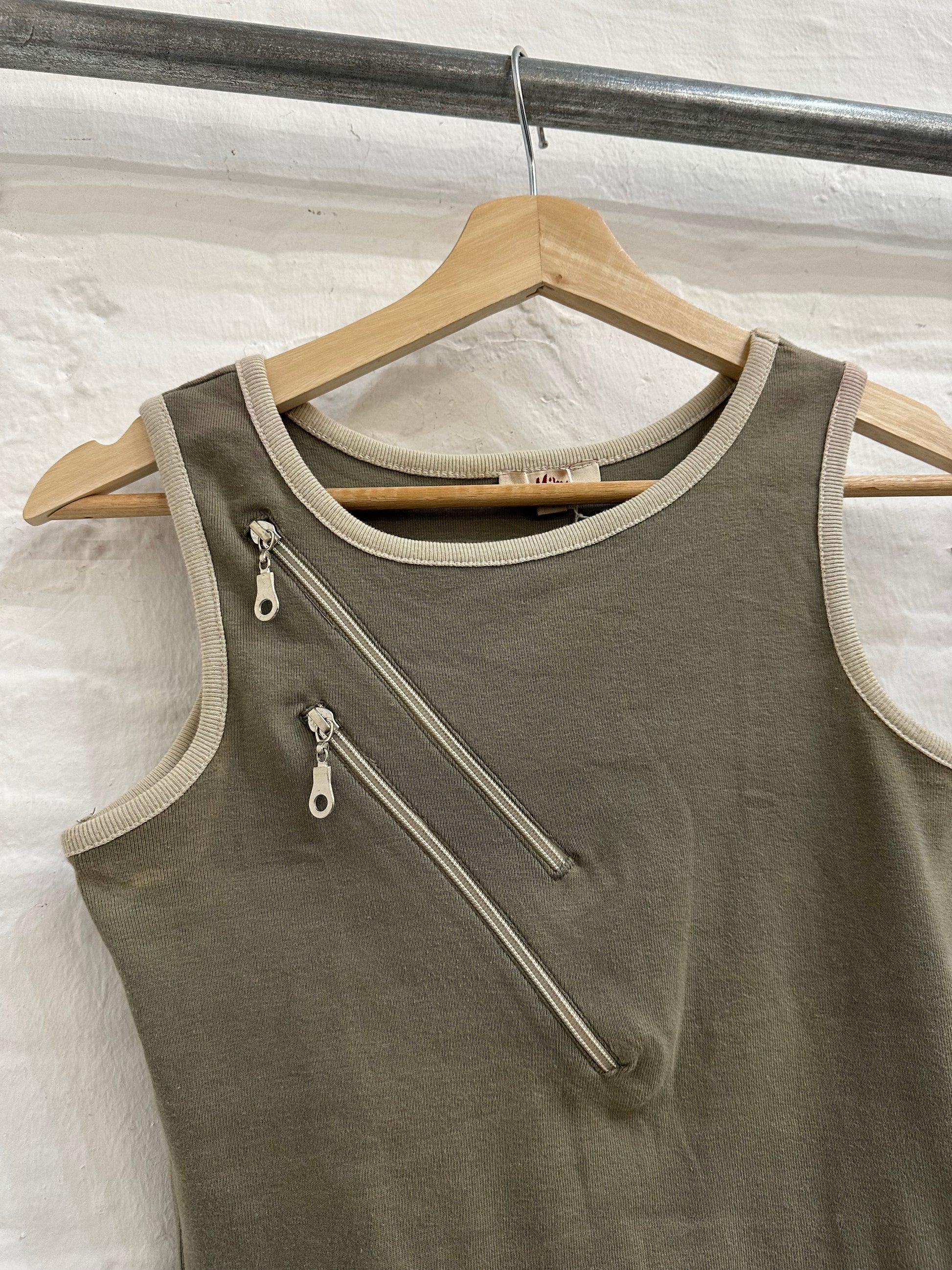 French Brand double zip Tank Top size small. some discolouration, see pics.